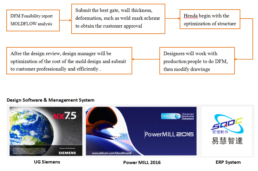 Mold design is the key to the success a project. HD design engineer proficient in DME, HASCO, DIN, JIS and other international standards, the application of mold standardization management and ERP system, combined with the requirements of customers, using professional mold design and analysis software, with optical mold, specular double color mold, large laminated mold, thin wall mold, multi-cavity mold and precise mold and so on various types of cuhk realize the customer demand.